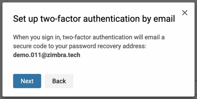 1. Success. You enabled 2FA via email for your Zimbra account!