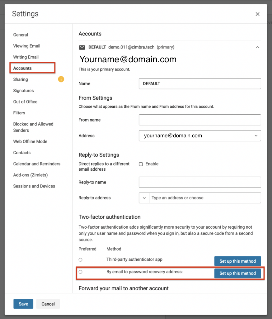 Support » Email » HIS Zimbra Hosted Email » Securing Login with Two Factor Authentication » 2FA by email (With alternate email address)